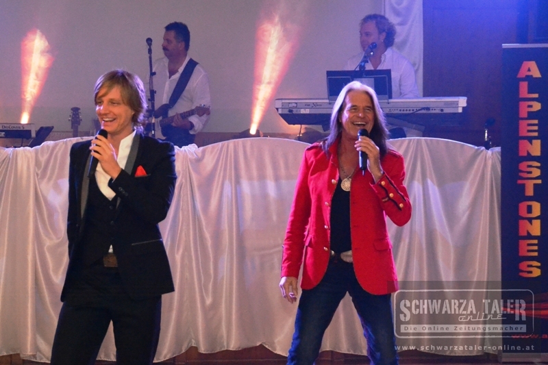 Höhepunkt des Festes war ein gelungener Showblock mit Barde Waterloo und seinem singenden Stiefsohn Ricky Berger. Die Zwei begeisterten – unterstützt von den Alpenstones – nicht nur die Ballbesucher, darunter Nationalrat Hans Hechtl, Pfarrer Ernst Pankl, Grüne-Urgestein Hans Haiden, Bierbrauer Alois und Karin Lechner, sondern auch Bürgermeister-Gattin Manuela, die ein spontanes Tänzchen mit den beiden wagte. Für Waterloo und Ricky Berger regnete es rote Nelken.