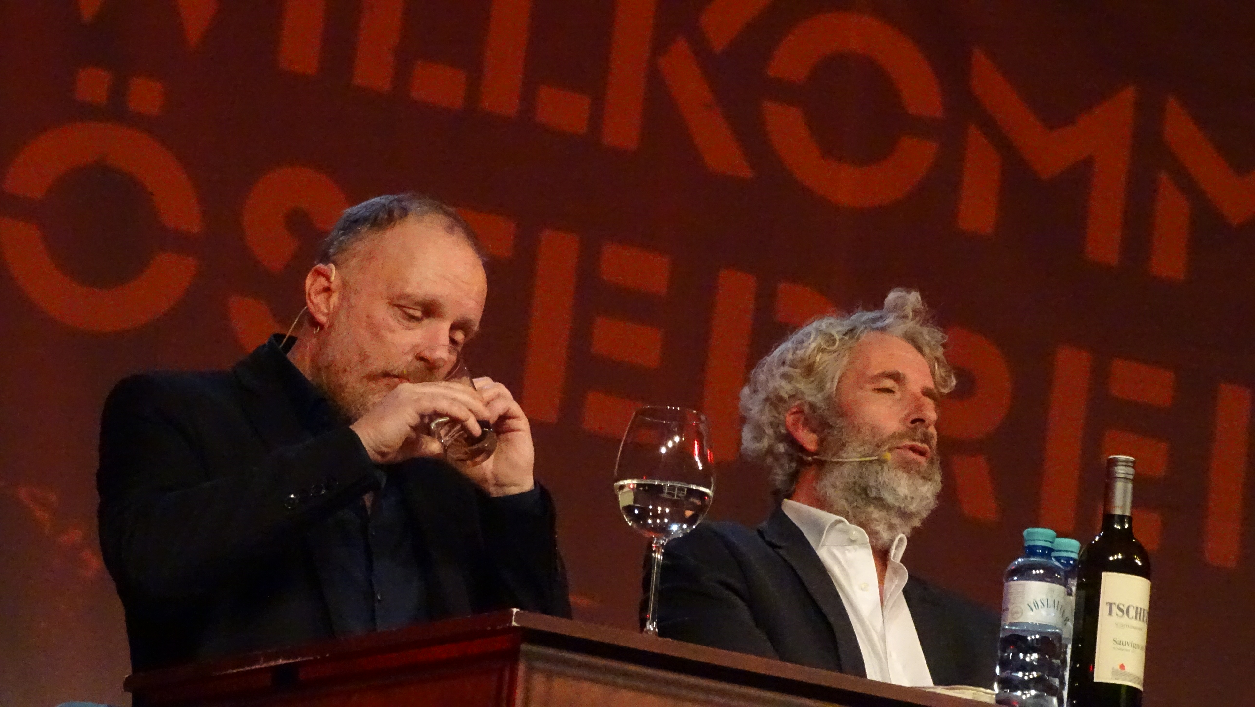 Schönes Haar und große Klappe begeisterten kürzlich im ausverkauften Wimpassinger Kulturcentrum. Das Willkommen Österreich Satiriker-Duo Dirk Stermann und Christoph Grissemann ernteten für ihre – fallweise tiefen – Wuchtln und Gags vom Publikum wahre Applaus-Tsunamis.