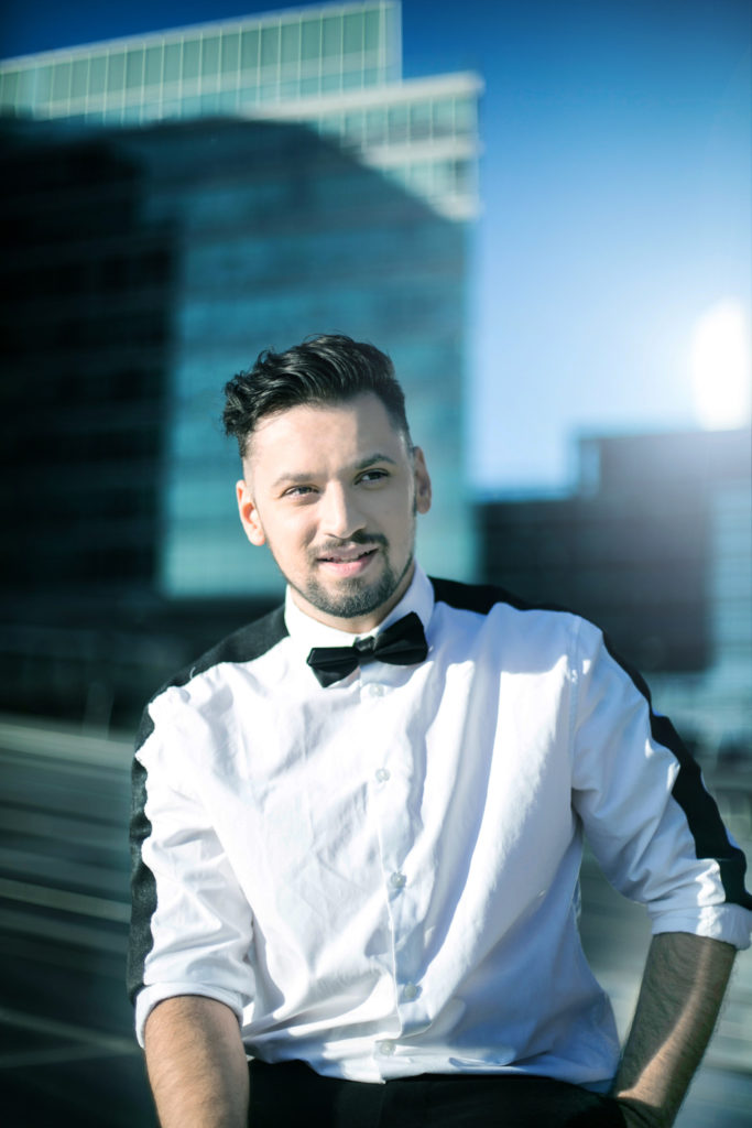 Auf der Bühne darf das Mascherl aka die Fliege nicht fehlen. Slomo schildert: „Sie gehört einfach zu mir, zu meinem Outfit auf der Bühne.“ Das schwarze Mascherl, kombiniert mit einem weißen Hemd, ist sein Markenzeichen und stehe auch für „den Kontrast, der in meiner Musik vorkommt“.