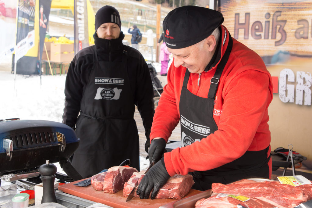 Unter dem Namen „Snow&Beef“ ging in der Wexl Lounge neben der Piste in St. Corona am Wechsel ein winterliches Grillfest mit Doppel-Grillweltmeister Adi Matzek vonstatten. Dabei landeten saftige Steaks vom Qualitätsrind auf dem Grillrost, von deren Geschmack man sich in Form von frisch gegrillten Kostproben selbst überzeugen konnte. Während die Kids ihre Runden auf der Piste drehten, bekamen die Eltern Infos und Tipps rund um die Auswahl der besten Grill-Teilstücke vom Rind, sowie zur perfekten Garzeit und richtigen Befeuerung von Profi Adi Matzek.