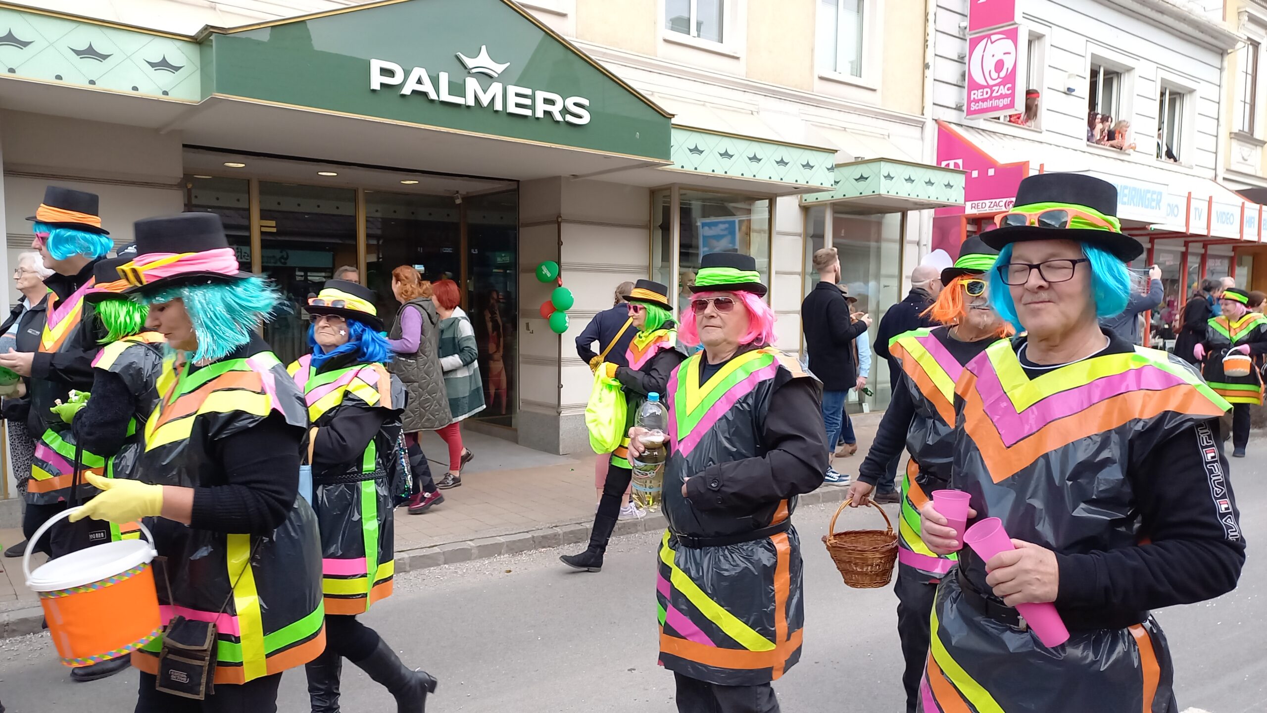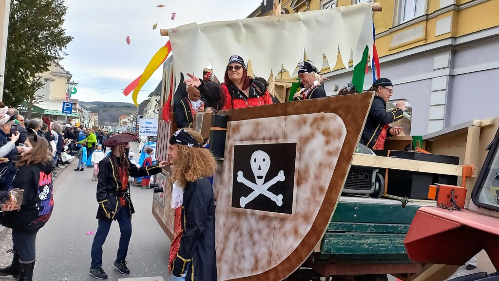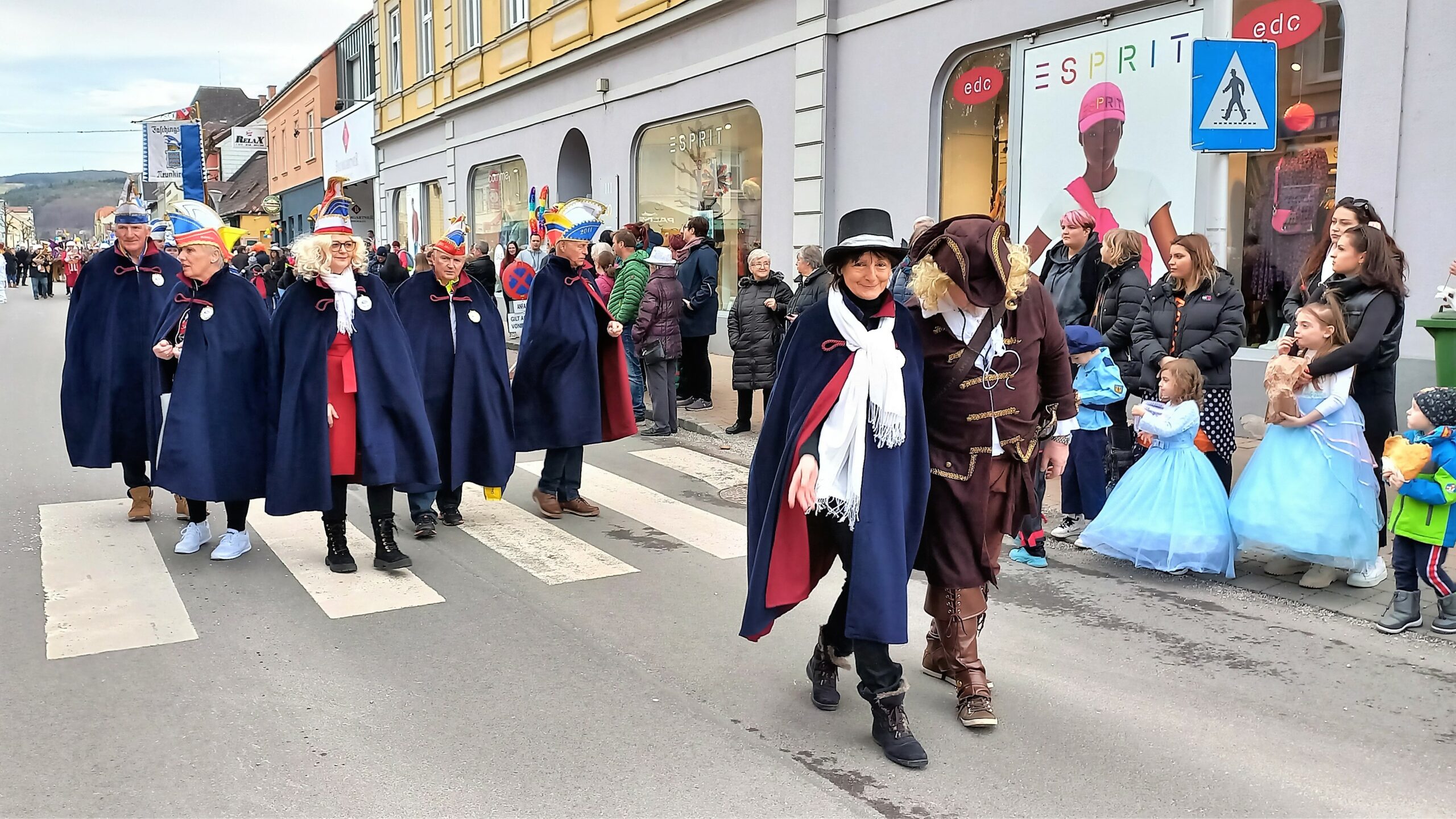 Nach zwei Jahren Hölle feiern wir heute wie im Himmel – verkündete ein Schild beim Gloggnitzer Faschingsumzug am vergangenen Montag. Die Alpenstadt wurde für einige Stunden zum Tummelplatz der verschiedensten festlich geschmückten Gruppen. Neben Bürgermeisterin Irene Gölles, Stadtmarketing-Obmann Ferdinand ‚Andi‘ Griessner, dem Gloggnitzer Faschingsprinzenpaar und einer Abordnung der Faschingsgilde Neunkirchen, den Stadtpiraten, Braumeister Luis Lechner, den Bogenschützen und Franz Antoni – der Bürgermeister von Enzenreith trat in die Pedale seiner Rikscha – zogen auch SchülerInnen und LehrerInnen der Gloggnitzer Bildungsanstalten in Kostümen und Masken durch die – für den Verkehr gesperrte – Alpenstadt. Selbst das Gesicht von Richard ‚Mörtel‘ Lugner fehlte nicht. Und über den Köpfen der Festgäst schwebte eine neugierige Navic Pro.