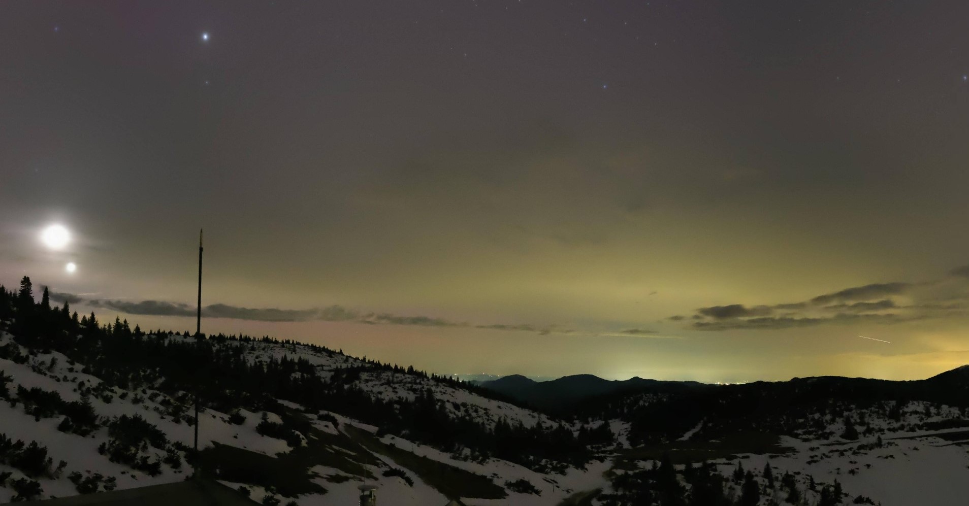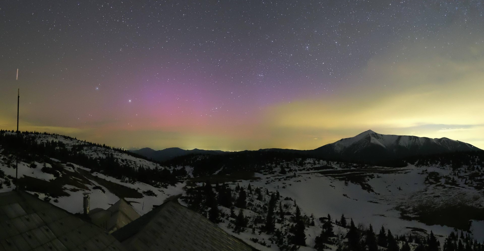 Ein massiver Sonnensturm voller elektrisch geladener Materie hat Montagnacht die Erde getroffen und in der oberen Atmosphäre für ein Lichtspektakel von intensiven Polarlichtern gesorgt. Das gewaltige Naturereignis beschert uns bunte Nächte mit schillernden Polarlichtern. Und weil dieser Magnetsturm so heftig ist, sieht man Polarlichter weltweit so südlich, wie es kaum zuvor der Fall war. Die Wetterkamera auf dem Ottohaus auf der Rax (Gemeinde Reichenau) hat das Atem beraubende Ereignis festgehalten. Unserer Shots wurden in der Montagnacht geschossen. Der Himmel zwischen Schneeberg und Rax leuchtete zwischen Mitternacht und zwei Uhr früh in wunderbar hellen Pastellfarben.