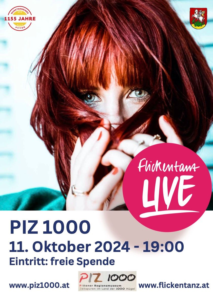 Daniela Flickentanz, die Sängerin und Liedermacherin mit Payerbacher Wurzeln, singt von Herz zu Herz auf ihrer gleichnamigen Tour und berührt mit intensiven und starken Botschaften am kommenden Freitag, 11. Oktober, auf pure und innige Weise im PiZ1000 in Pitten. Eintritt: freie Spenden. Beginn: 19.00 Uhr.