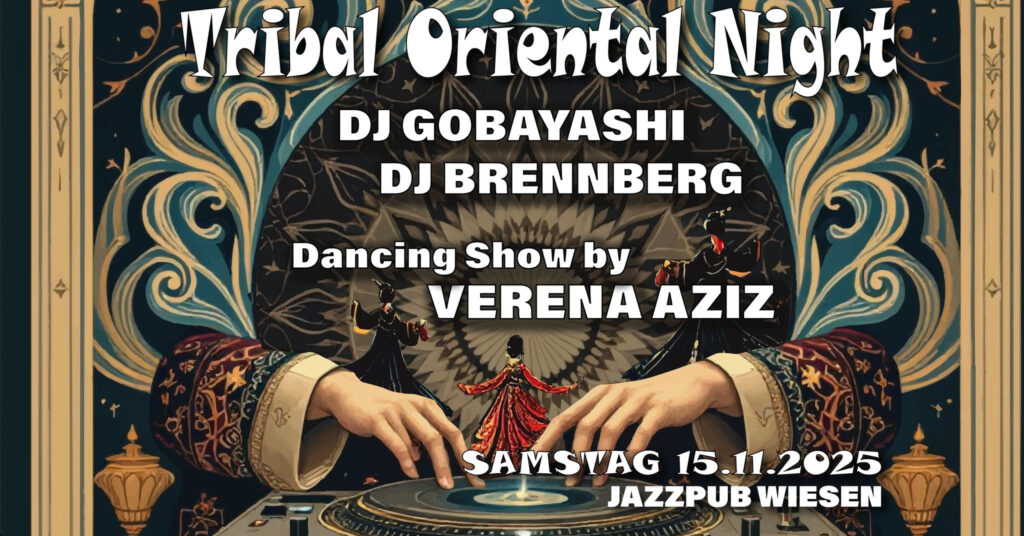 Nach dem wundervollen Start am Sonnensee in Ritzing kommt die Tribal Oriental Night jetzt ins Jazz Pub Wiesen. Sei dabei und tauche ein in erdig kraftvolle Tribal-Oriental-Klänge, begleitet durch sinnlichen Tanz und dem unverwechselbarem Jazz Pub Charme. Musik, Tanz & Performance sind die tragenden Säulen der Tribal Oriental Night: DJs, Live-Acts und Tänzerinnen verweben sich zu einem Gesamterlebnis, das weit über klassische Clubnächte hinausgeht. Freu dich auf einen Abend mit Tiefgang und ritueller Atmosphäre im Vordergrund – ein Erlebnis, das in Erinnerung bleibt und Menschen verbindet.