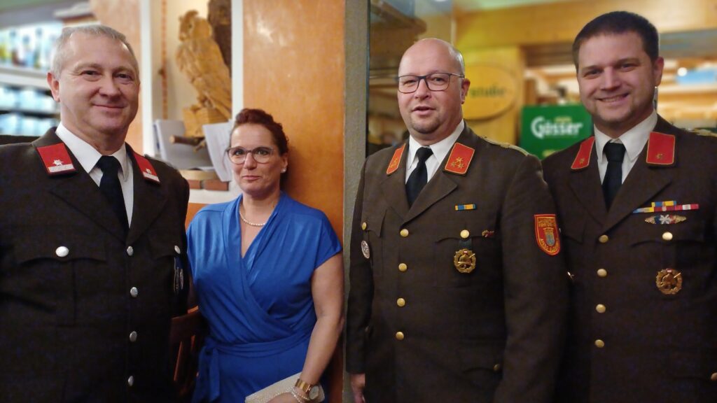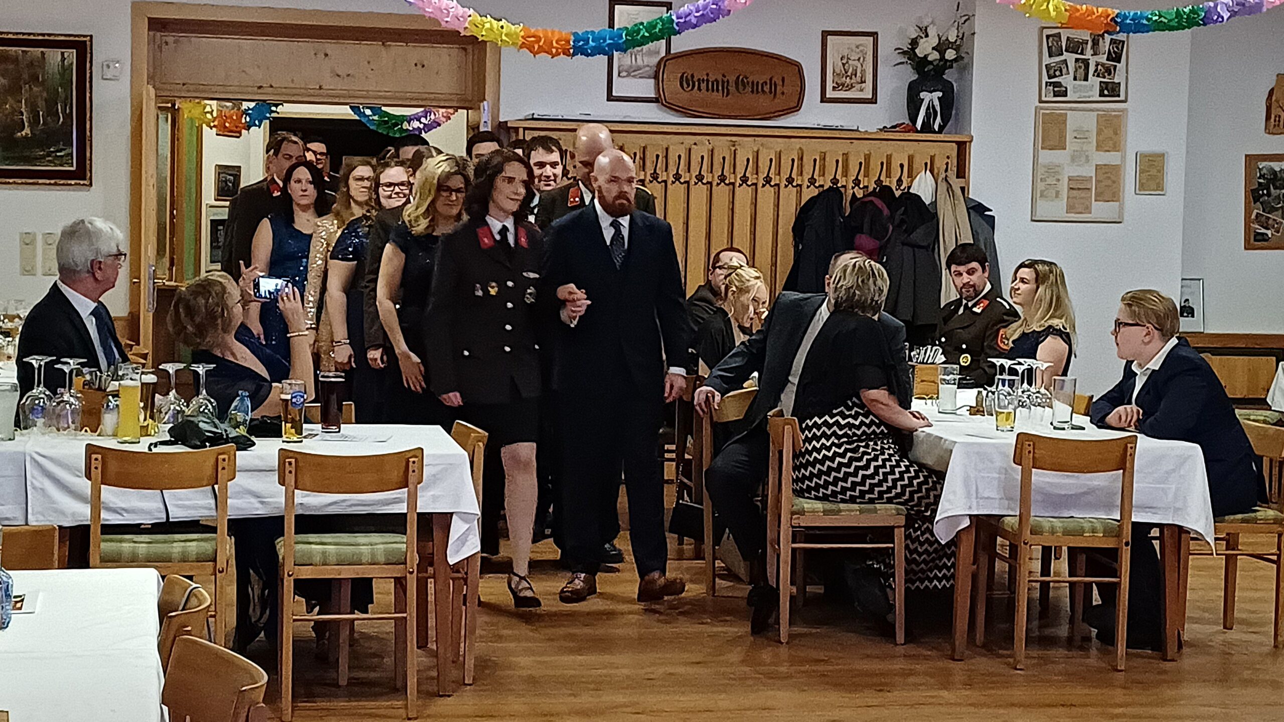 Kommandant Johannes Haider in Begleitung seiner Gattin Andrea konnte unter den Festgästen Bürgermeister Thomas Stranz mit Gattin Barbara, den Gloggnitzer Feuerwehrchef Thomas Rauch mit seiner Gattin Manuela, Unterabschnittskommandant Michael Scherbichler von der Feuerwehr Otterthal, Kommandant a.D. Markus Schneeweiß und Kommandant-Stellvertreter Matthias Tauchner von der Feuerwehr Trattenbach, sowie zahlreiche Feuerwehrkameradinnen und Feuerwehrkameraden aus den Nachbargemeinden begrüßen.
