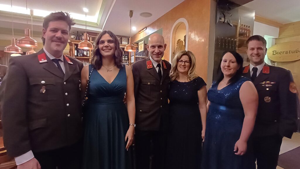 Die tolle Party genossen Löschmeister und Gruppenkommandant Michael Haider, Celine Poschauko, Kommandant Johannes und Andrea Haider und Melanie Bauer mit Kommandantenstellvertreter Martin Bauer (v.l.).