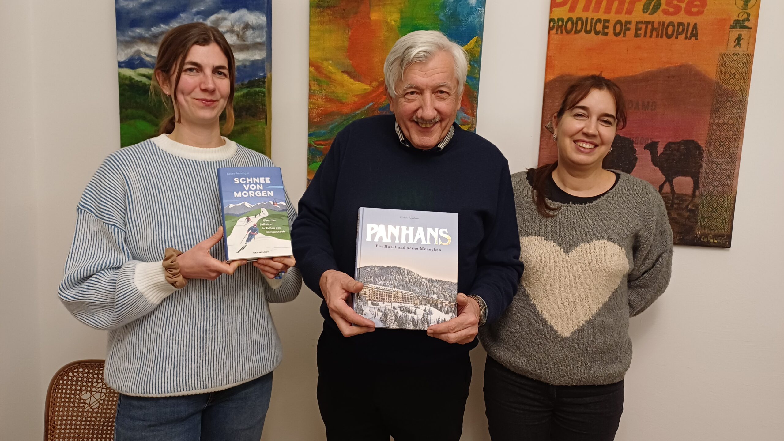 Journalistin Laura Anninger, der frühere Panhans-Direktor Eduard Aberham und Veranstalterin Heidi Prüger (v.l.) konnten sich über reges Interesse freuen.