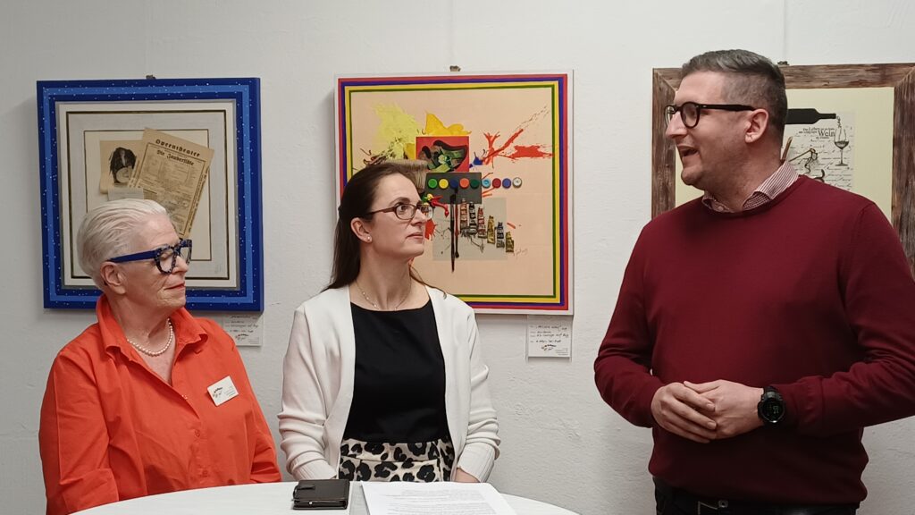 Am vergangenen Freitag fand die feierliche Neu-Eröffnung mit der Ausstellung der zeitgenössischen Künstlerin Ulli Jessl mit Bürgermeister Stefan Zimper, Vizebürgermeister Sebastian Goldfuß, Gemeinderätin Brigitte Zottl und zahlreichen Gästen in den neuen Räumlichkeiten im Schloss Fischau statt. Die Besucherinnen und Besucher der Pop-up-Galerie ließen sich am Eröffnungsabend von den Geschichten fesseln, die Ulli Jessl über ihre Werke zu erzählen wusste.