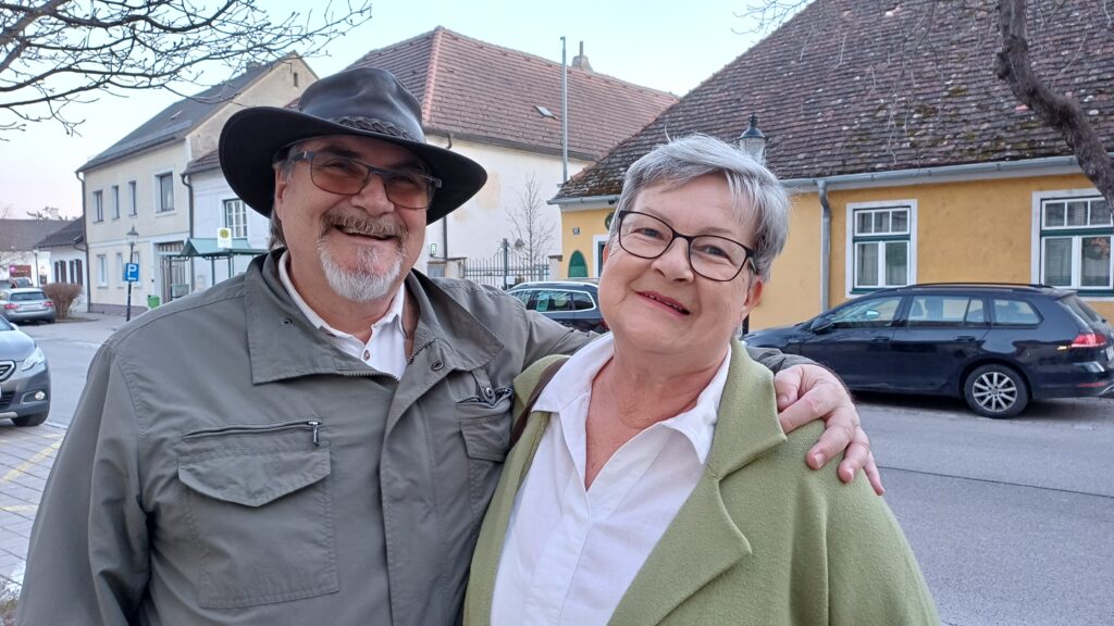 Martina und Wolfgang Pannek aus Wiener Neustadt schnupperten vor der Pop Up Galerie Fischauer Luft.