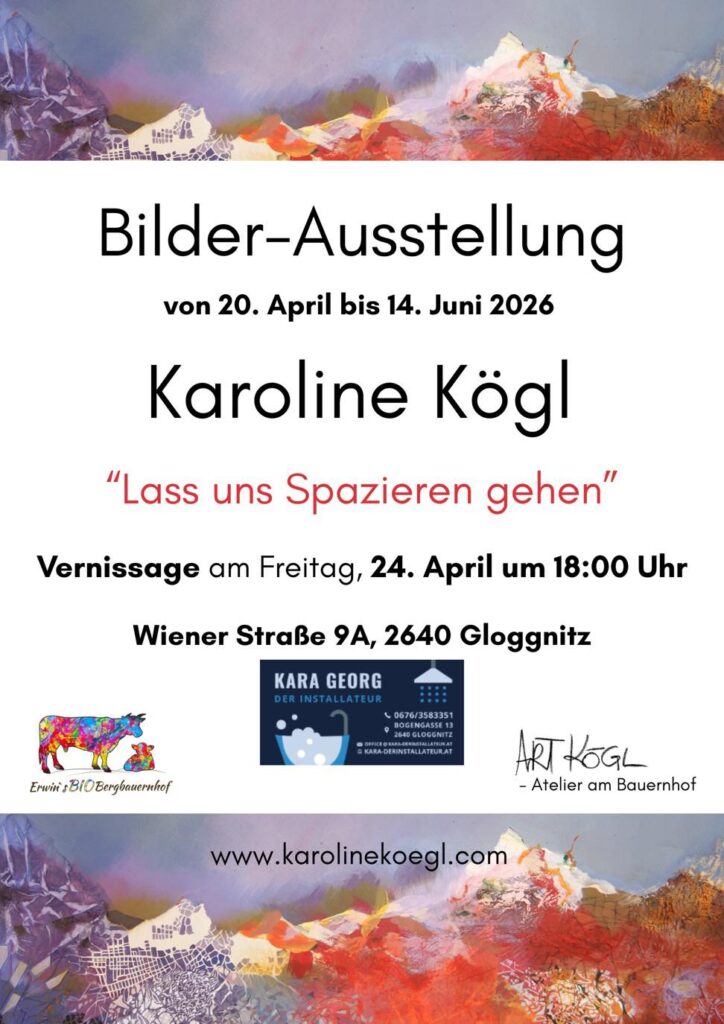 ★ LiKE US ON FACEBOOK Der SCHWARZATALER KUNST-TiPP: Bilder von Karoline Kögl hängen vom 20. April bis 14. Juni in der Galerie Kara in Gloggnitz Veröffentlicht am 21. April 2026 von CR . Grafik © Karoline Kögl, Galerie Kara ★ LiKE US ON FACEBOOK