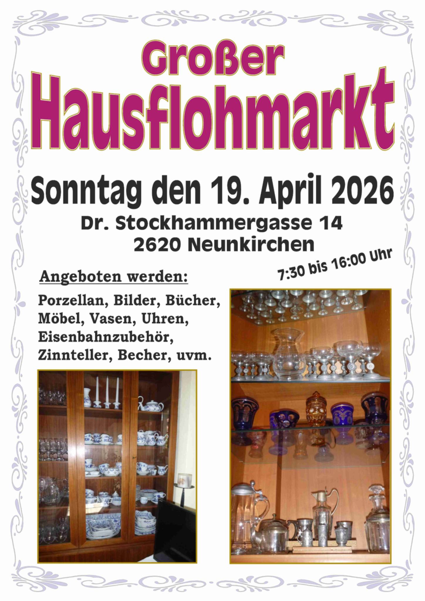 ★ LiKE US ON FACEBOOK Großer Hausflohmarkt am 19. April von 7.30 bis 16 Uhr in Neunkirchen Veröffentlicht am 12. April 2026 von CR Grafik © Brandstätter ★ LiKE US ON FACEBOOK