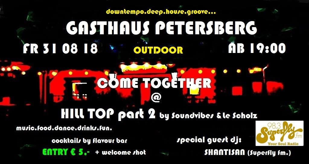 Nach dem tollen Erfolg von ‚Come Together @ Hill Top‘, gibts am 31. August den Part 2 am Petersberg (Hill Top) in der perfekten Location, Judith’s Gasthaus Petersberg in Ternitz. Das ganze findet natürlich wieder Outdoor statt, im tollen Gastgarten, diesmal ab 19 Uhr.