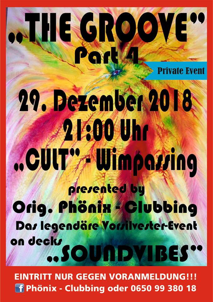 Am Samstag, 29. Dezember geht die Originale Private Phönix-Clubbing Serie (Anmeldung: Kontaktnummer am Flyer) mit dem traditionellen Vorsylvester-Clubbing im Cult in Wimpassing in die vierte Runde. On Decks: Dieter ‚Soundvibes‘ Fischer. […]