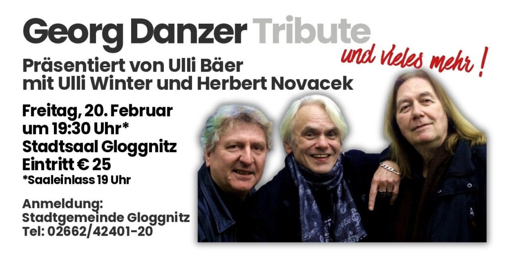 ☮️ DER SCHWARZATALER LiVE-TiPP ★ Georg Danzer Tribute und mehr … mit Ulli Bäer am Freitag, 20. Februar im Stadtsaal Gloggnitz★